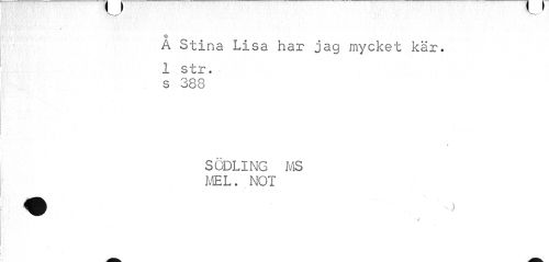 //// 0 //// A Stina Lisa har jag mycket kär. //// 1 str. //// s 388 //// \ //// SODLING MS MEL..NOT //// ) //// "¦Vf ////