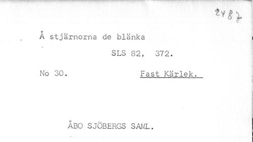 //// M ; //// O //// A stjärnorna de blänka i //// SLS 82, 372. //// No 30• Fast Kärlek. //// ÅBO SJÖBERGS SAML. //// I ////