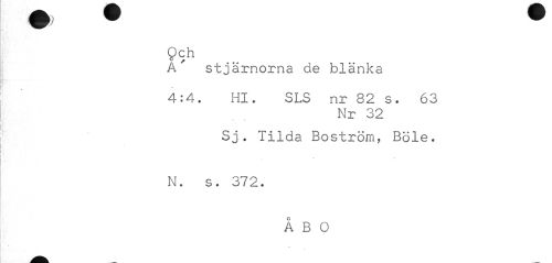 //// Qch //// A' stjärnorna de blänka //// 4:4. Hl. SLS nr 82 s. 63 //// Nr 32 //// Sj. Tilda Boström, Böle. //// v. - //// N. s. 372. //// ÅBO //// ' A ////
