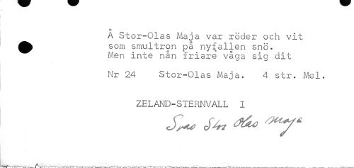 //// o //// A Stor-Olas Maja var roder och vit //// •som smultron på nyfallen snö. //// 0 "•Ö*. Q //// Men inte nan friare vaga sig dit Nr 24 Stor-Olas Maja. 4 str. Mel. //// ZELAND-STERNVALL I ////