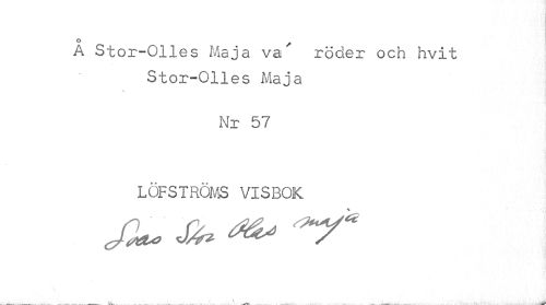 //// Å Stor-Olles Maja va' roder och hvit //// Stor-Olles Maja //// Nr 57 //// •i //// LÖFSTRÖMS VISBOK //// Jfr ////