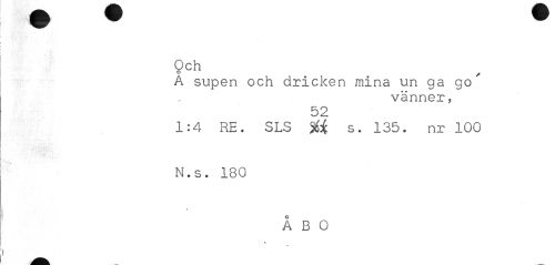 //// Qch //// A supen och dricken mina un ga go //// vänner, //// 52 //// 1:4 RE. SLS %i s. 135. nr 100 N.s. 180 //// s //// ÅBO ////