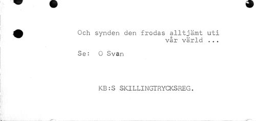 //// ^ Och synden den frodas alltjämt uti //// vår värld ... //// Se: O Svan //// KB:S SKlLLINGTRYCKSREG. ////