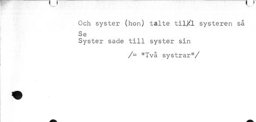 //// Och syster (hon) talte til/l systeren så Se //// Syster sade till syster sin //// /= "Två systrar"/ ////