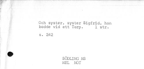 //// t //// " % //// ri //// ... - • //// I" //// Och syster, syster Sigfrid, hon //// bodde vid ett Torp. 1 str. //// .j ... //// s. 242 //// t p. ' ' I Cf. //// SODLING MS MEL NOT ////