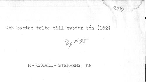 //// I //// Och syster talte till syster sen (162) //// / //// H - CAVALL - STEPHENS KB ////