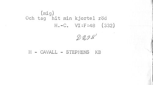 //// (mig) //// Och tag hit min kjortel röd //// H.-C. VI:F:48 (332) //// i //// H - CAVALL - STEPHENS KB ' • I ////