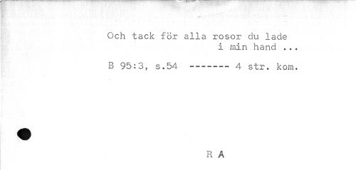 //// W- v • //// Och tack för alla rosor du lade //// i, t //// i min hand . .. B 95:3, s.54 ---4 str. kom. //// R A ////