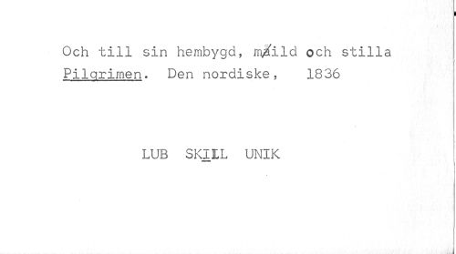 //// i //// Och till sin hembygd, mjfild och stilla Pilgrimen. Den nordiske, 1836 //// LUB SKIIL UNIK //// I //// i ////