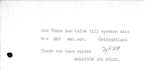 //// Och ihore han talte till systern sin: N:o 262 Mel.not. Östergötland //// Ihore och hans syster UJ ^ AHLSTRÖM 300 FOLKV. ////