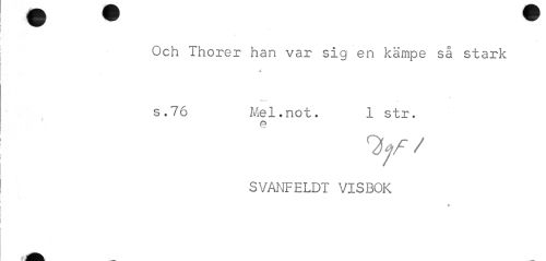 //// Och Thorer han var sig en kämpe så stark //// d //// j //// s.76 Mel.not. 1 str. //// e //// Hf/ //// SVANFELDT VISBOK ////