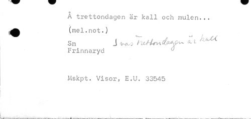 //// o //// A trettondagen är kall och mulen... //// ml. //// ^ (mel.not.) //// Sm J Vtvo ' //// Frinnaryd //// Mskpt. Visor, E.U. 33545 //// 1 ^ ' j(j i +4* ////