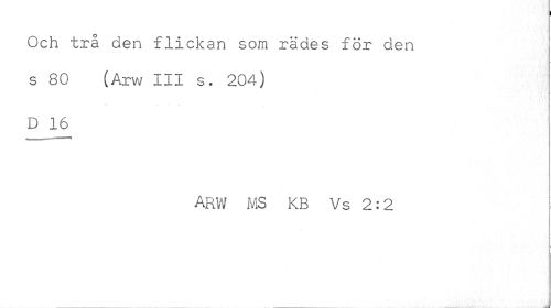 //// I //// Och tra den flick an som ira des för den [ //// s 80 (Arw III s. 204) //// D 16 //// ARW MS KB Vs 2:2 ////