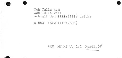 //// ¦ 11 ^^^^ //// Och Tulla hem Och Tulla vall //// och gif den iifiislille dricka s.553 (Arw III s.506) //// ARW MS KB Vs 2:2 Nordl.$/ //// j - ////