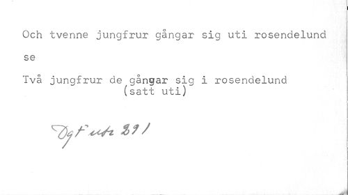 //// t //// Och tvenne jungfrur gångar sig uti rosendelund se //// Två jungfrur de gångar sig i rosendelund //// (satt uti) ////