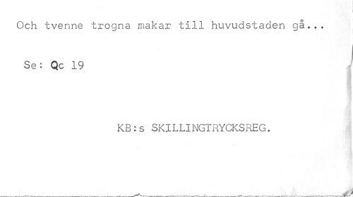 //// Och tvenne trogna makar till huvudstaden gå... //// Se: Qc 19 J //// KB:s SKILLINGTRYCKSREG. ////