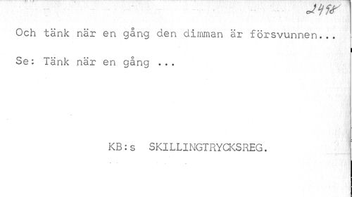 //// ¦ - • — - cxtyjo //// Och tänk när en gång den dimman är försvunnen... //// i //// Se; Tänk när en gång ... //// KB:s SKlLLINGTRYCKSREG. ////