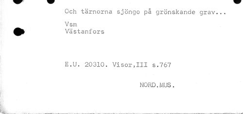 //// Och tärnorna sjöngo på grönskande grav... V sm //// Västanfors //// E.U. 20310. Visor.III s.767 //// NORD.MUS. ////