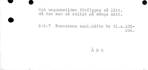 //// Och ungdomstiden förflvger så lätt, då har man så roligt pa många sätt, //// 6:6.? Svenssons saml.häfte Nr 31.s.105- //// 106. //// ÅBO ////