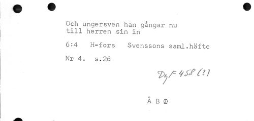 //// Och ungersven han gångar nu till herren sin in //// 6:4 H-fors Svenssons saml.häfte Nr 4. s.26 //// Å B (D ////