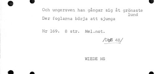 //// Och ungersven han gångar sig åt grönaste //// lund //// Der xoglarna börja att sjunga //// Nr 169. 8 str. Mel.not. //// /Db[B 48/ //// WIEDE MS ////