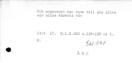 //// . - - --- „ ^ • //// " //// Och ungersven han sade till sin allra ' sm allra käresta vän 3 //// 13:4 LT. S.L.S.360 s.124-125 nr 1. //// N. //// UtM7 //// ÅBO ////