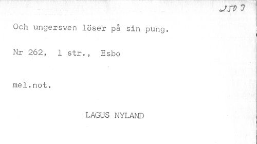 //// Och ungersven löser på sin pung. Nr 262, 1 str., Esbo //// mel.not. //// LAGUS NYLAND ////