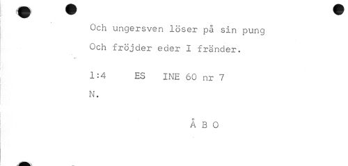 //// Och ungersven löser på sin pung Och fröjder eder I fränder. //// 1:4 ES INE 60 nr 7 N. //// ÅBO ////