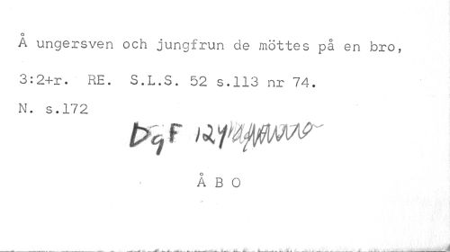 //// o //// A ungersven och jungfrun de möttes på en bro, //// 3:2+r. RE. S.L.S. 52 s.113 nr 74. N. s.172 //// t>cj F ufAjm^' //// ÅBO //// .. - . ... * a . . A ////