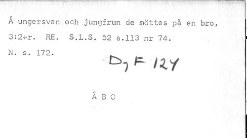 //// o //// A ungersven och jungfrun de möttes på en bro, | //// 3:2+r. RE. S.L.S. 52 s.113 nr 74. , 1 //// N. s. 172. . //// t>7 ^ ny //// ÅBO ////