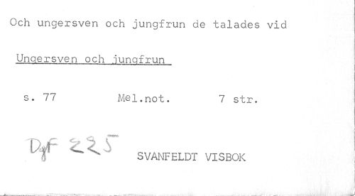//// Och ungersven och jungfrun de talades vid Ungersven och jungfrun //// s. 77 Mel.not. 7 str. //// ! i //// __ //// I 7 / A i //// 1 SVANFELDT VISBOK //// i- ' i? ' ! //// ('jfcLU___fl^ftj^jttifi^WtaA-ru'- - L-jLiitårt> v ... & v tittanOftii CäAfc... ¦ — .^ ., ^ > - dämm* ////