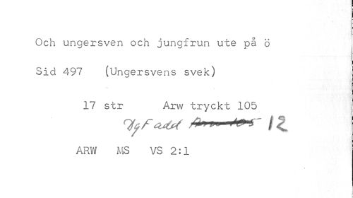 //// Och ungersven och jungfrun ute på ö Sid 497 (Ungersvens svek) //// 17 str Arw tryckt 105 //// fa»* ii //// ARW MS VS 2:1 ////