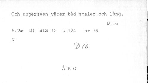 //// Och ungersven växer båd småler och lång, //// D 16 //// 6:2w LO SLS 12 s 124 nr 79 //// N //// ÅBO ////