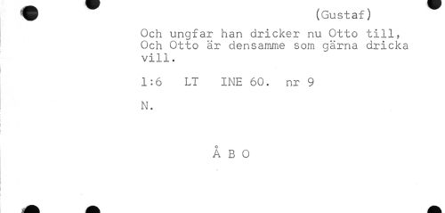 //// Och ungfar han dricker nu Otto till, Och Otto är densamme som gärna dricka vill. //// 1:6 LT INE 60. nr 9 N. //// ÅBO ////