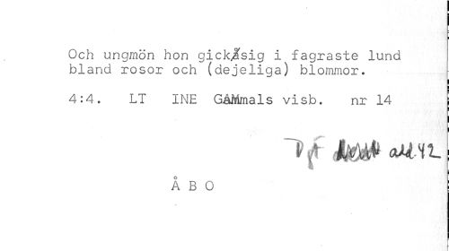 //// i //// Och ungmön hon gickjfsig i fagraste lund bland rosor och (dejeliga) blommor. //// 4:4. LT INE GåMmals visb. nr 14 j //// f M-Ht | //// ÅBO j //// N j - ////