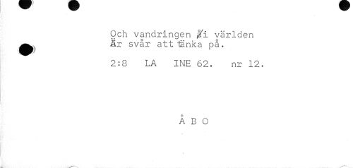 //// Och vandringen jafi världen Är svår att länka på. //// 2:8 LA INE 62. nr 12. //// Å B O ////