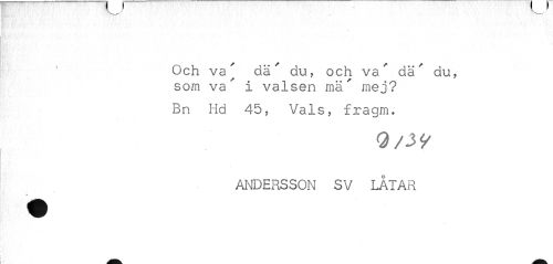 //// Och va' dä' du, och va' dä' du, som va' i valsen mä' mej? //// Bn Hd 45, Vals, fragm. //// 9/19 //// ANDERSSON SV LÅTAR ////