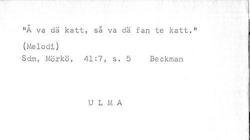 //// o 0 - //// "A va dä katt, sa va dä fan te katt." (Melodi) //// Sdm, Mörkö, 41:7, s. 5 Beckman //// U L M A ////