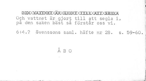 //// I //// Och vattnet är,gjort till att segla i, på den saken bäst så förstår oss vi. //// 6:4.? Svenssons saml. häfte nr 28. s. 59-60. //// ÅBO //// 1 ////