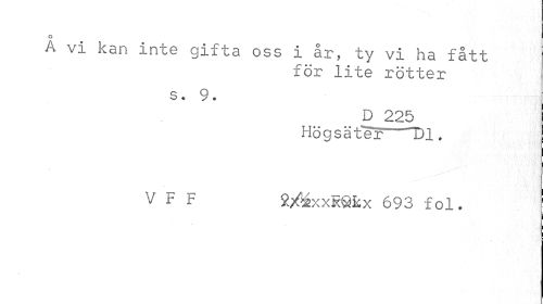 //// o //// A vi kan inte gifta oss i år, ty vi ha fått //// för lite rötter //// s. 9. //// D_225 Högsäter Dl. //// V F F fo&xxRSkx 693 fol. j ////