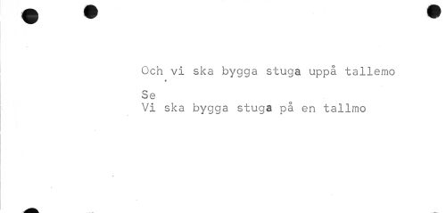 //// Och vi ska bygga stuga uppå tallemo Se //// Vi ska bygga stuga på en tallmo ////