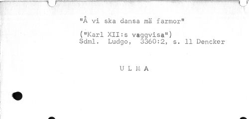 //// o //// f,A vi ska dansa mä farmor11 //// ("Karl XII:s vaggvisa") //// Sdrnl. Ludgo? 3360:2, s. 11 Dencker //// U L M A ////