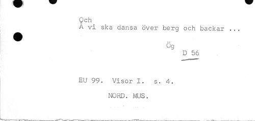 //// Qch^ //// A vi ska dansa över berg och backar ... //// Ög //// D 56 //// EU 99. Visor I. s. 4. //// NORD. MUS. ////