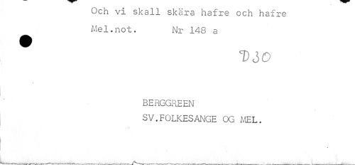 //// Och vi skall skära hafre och hafre Mel.not. Nr 148 a //// DdO //// BERGGREEN //// SV.FOLKESANGE OG MEL. //// ---p---—---—--I—---n--V^-"-»---—___¦—„ . ¦ ___m ////
