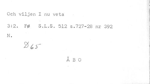 //// i //// Och viljen I nu veta //// 3:2. F0 S.L.S. 512 s.727-28 nr 392 N. //// ÅBO ////