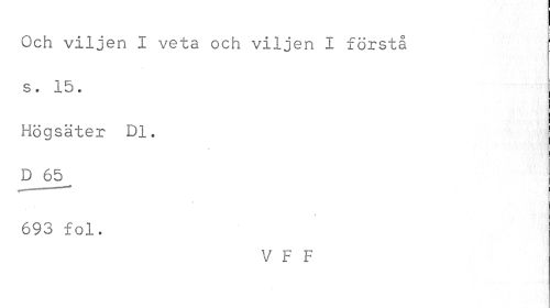 //// Och viljen i veta och viljen I förstå //// S • 15 • //// Högsäter Dl. //// 4 //// 693 fol. //// V F F ////