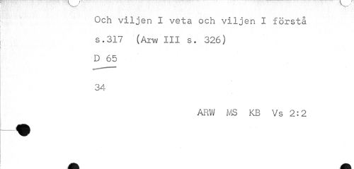 //// Och viljen I veta och viljen I förstå s.317 (Arw III s. 326) D 65 //// 34 //// ARW MS KB Vs 2:2 ////