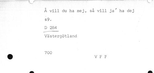 //// o 0 f //// A vill du ha mej, sa vill ja ha dej //// s9. //// D 284 //// Västergötland //// / //// 700 ////