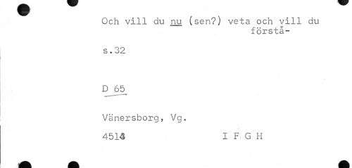 //// Och vill du nu (sen?) veta och vill du //// förstå- //// s. 32 //// Vänersborg, Vg. //// { //// 4514 I F; G H ////