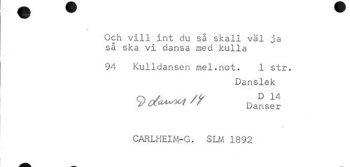 //// » //// Och vill int du så skall väl ja så ska vi dansa med kulla //// 94 Kulldansen mel.not. 1 str. //// Danslek //// 9 ^ Danser //// CARLHEIM-G. SLM 1892 ////